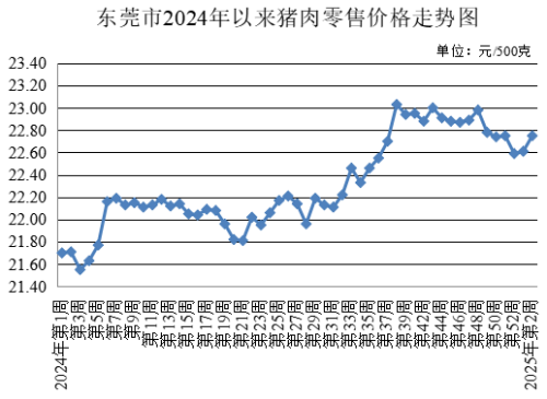 第2周,4種豬肉農(nóng)貿(mào)市場零售均價(jià)為(每500克,下同)22.75元,較上周上升0.62%,其中,排骨、精瘦肉、有皮上肉、肋條肉(五花肉)零售均價(jià)分別為33.07元、22.55元、17.30元、18.10元,較上周分別上升1.047%、持平、上升0.70%、上升0.56%。