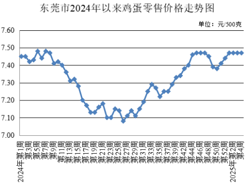 第4周,雞蛋農(nóng)貿(mào)市場(chǎng)零售均價(jià)為每500克7.47元,與上周持平。