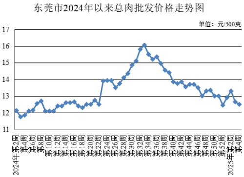 第4周,生豬出場(chǎng)價(jià)格為每公斤16元,與上周持平???cè)馀l(fā)均價(jià)為每500克12.50元,較上周下降1.19%。