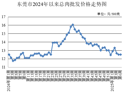 第6周,生豬出場(chǎng)價(jià)格為每公斤17元,較春節(jié)前一周上升6.25%。總?cè)馀l(fā)均價(jià)為每500克12.50元,與春節(jié)前一周持平。